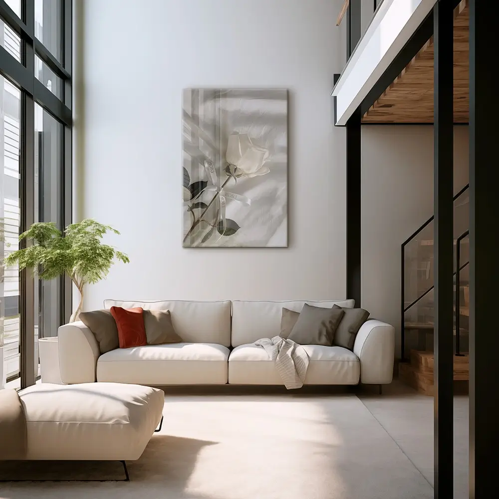 Die „Dior Rose“ verkörpert pure Raffinesse und den Charme der französischen Luxuswelt. Die zarte weiße Blüte, verziert mit dem charakteristischen Dior-Band, wirkt wie ein Kunstwerk der Natur. Dieses Bild bringt Leichtigkeit und Klasse in jeden Raum. Ein Hauch von zeitloser Eleganz macht es zu einem exklusiven Dekorelement.